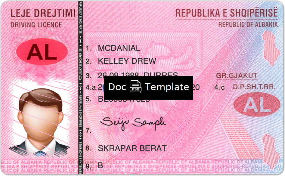 Buying and possessing an Albania Driver License Template is not illegal. However, This template is for web illustrative purposes only. The use for fraudulent purposes is prohibited. so, use the template with your own responsibility.