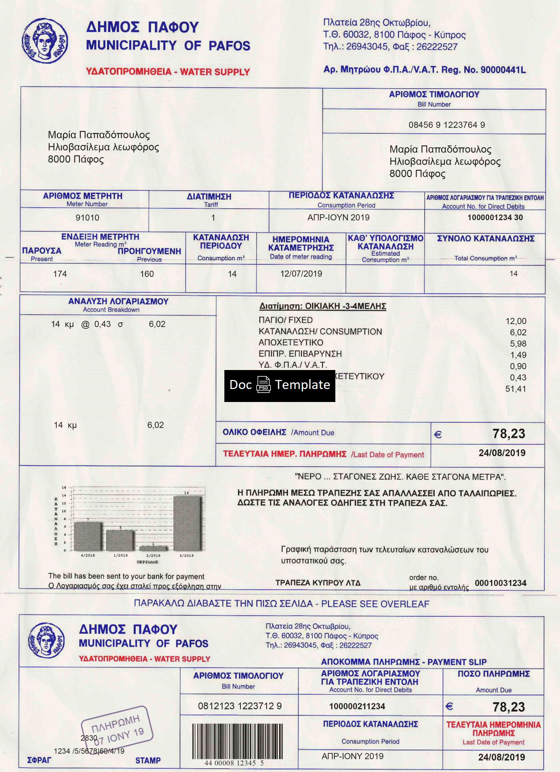Buying and possessing an Cyprus Utility Bill Template is not illegal. However, This template is for web illustrative purposes only. The use for fraudulent purposes is prohibited. so, use the template with your own responsibility.Statement