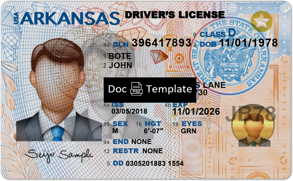 Arkansas Driver License PSD Template