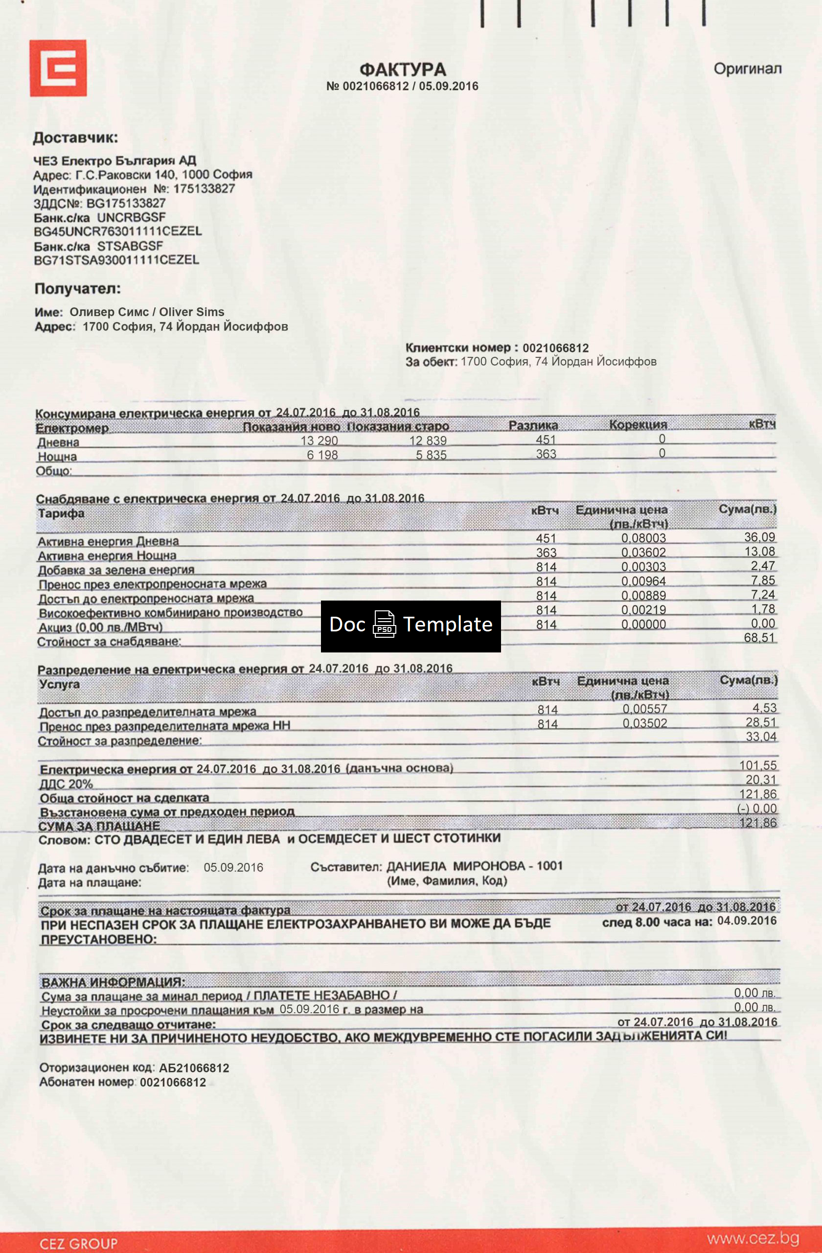 Buying and possessing an Bulgaria Utility Bill Template is not illegal. However, This template is for web illustrative purposes only. The use for fraudulent purposes is prohibited. so, use the template with your own responsibility.Statement
