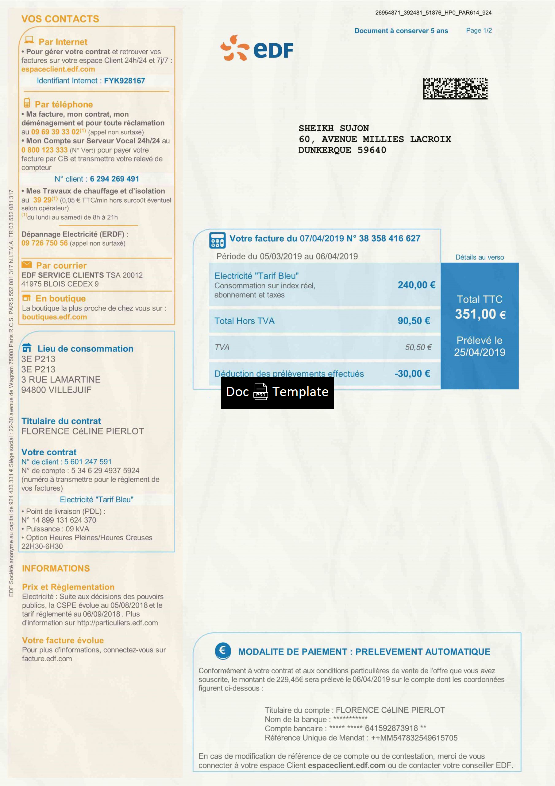 Buying and possessing an France Utility Bill Template is not illegal. However, This template is for web illustrative purposes only. The use for fraudulent purposes is prohibited. so, use the template with your own responsibility.Statement