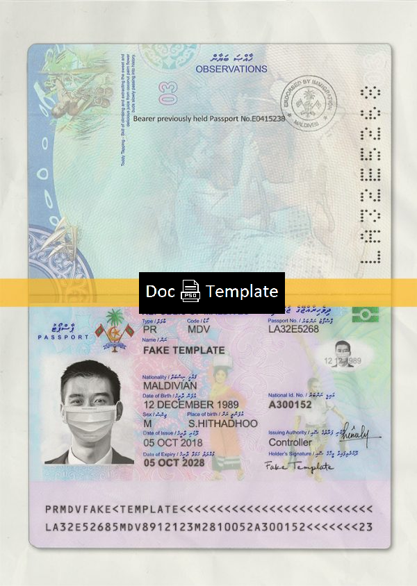 Buying and possessing an Maldives Passport Template is not illegal. However, This template is for web illustrative purposes only. The use for fraudulent purposes is prohibited. so, use the template with your own responsibility.