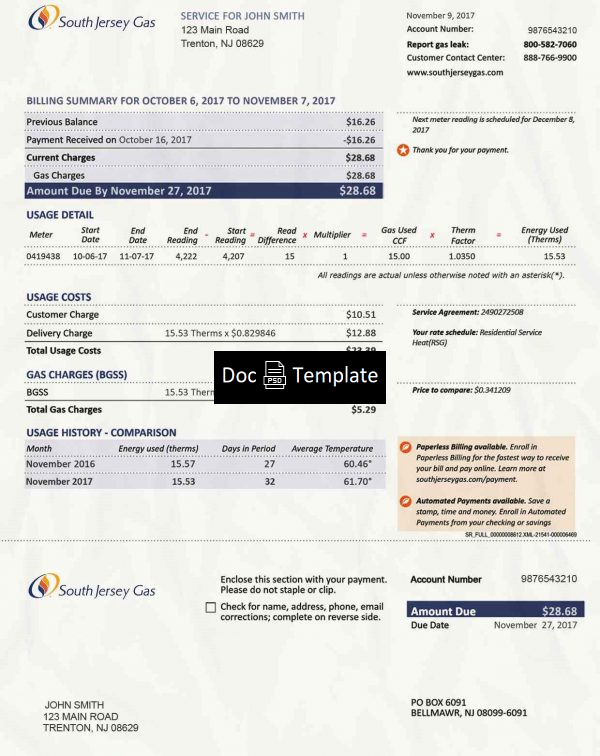 Buying and possessing an New Jersey Utility Bill Template is not illegal. However, This template is for web illustrative purposes only. The use for fraudulent purposes is prohibited. so, use the template with your own responsibility.Statement