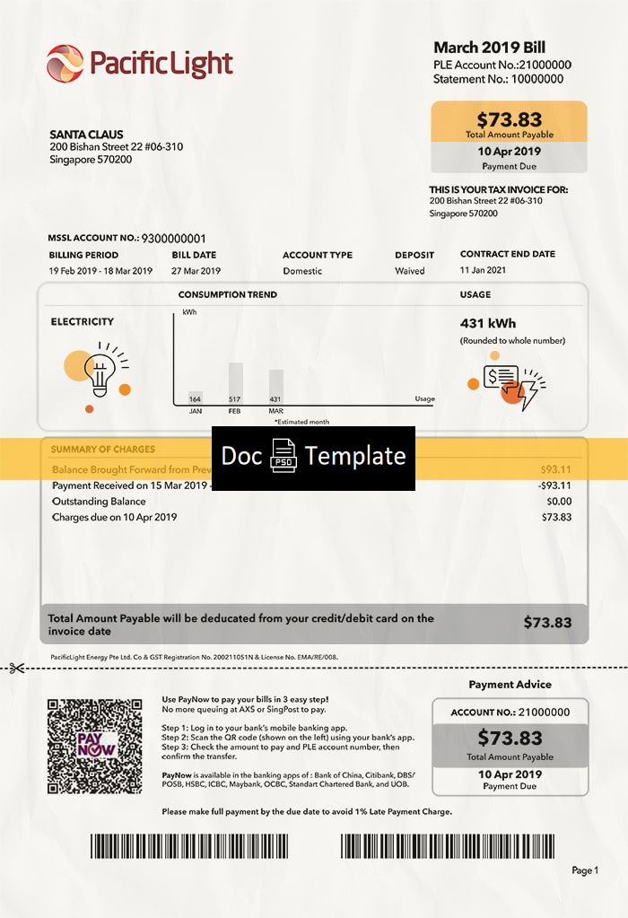 Singapore Utility Bill Template PSD